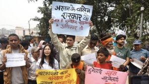 प्रदर्शनकारीहरूले आफ्नै चुनावी वाचापत्र पढ्न, जबरजस्ती उठिबास लगाउने कार्य बन्द गर्न तथा गरिबमाथि अन्याय नगर्न आग्रह गर्दै नाराबाजी गरिरहेका छन् ।